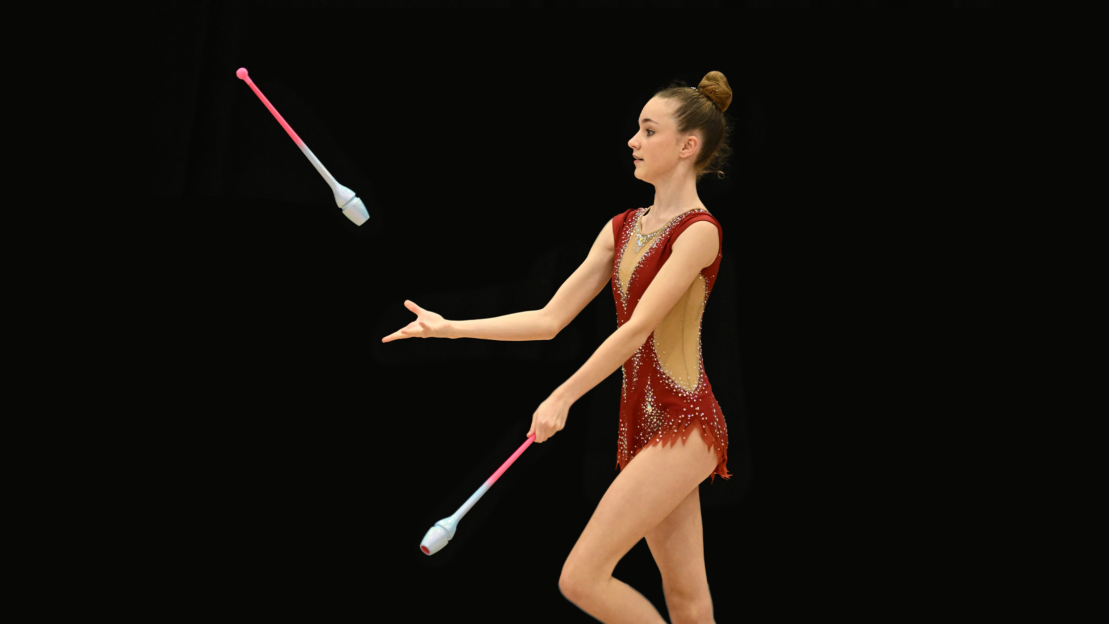 Blend expressive movement with hand-held equipment in Rhythmic Gymnastics.
